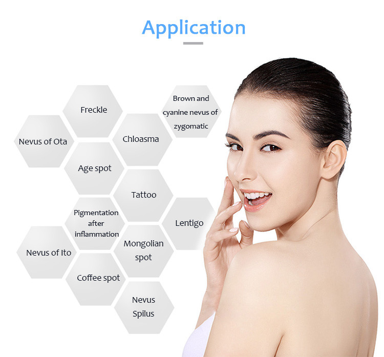 The absorption peak of melanin at 1064nm is much higher than ordinary Q-switched laser which means the energy to work on normal skin is low. There is no server wounds and thermal damage to the dermis after treatment.